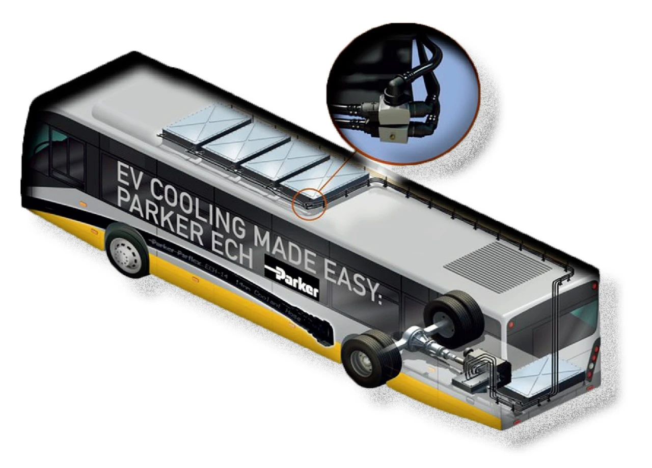 某公交車制造商在生產(chǎn)最新一代的電動公交車時,希望能夠采用創(chuàng)新的系統(tǒng)解決方案,以降低車輛原有電池冷卻系統(tǒng)的成本和復雜性。針對這一需求,派克漢尼汾為其設計打造全套冷卻系統(tǒng)解決方案——適用于水基冷卻劑的新型液冷分配技術方案,包括由輕質熱塑性材料制成的ECH(電動冷卻用軟管)軟管以及帶EPDM O形圈密封的VDA接頭。該方案安裝簡便,更具成本效益,將幫助制造商節(jié)省至少25%的材料和人工成本。