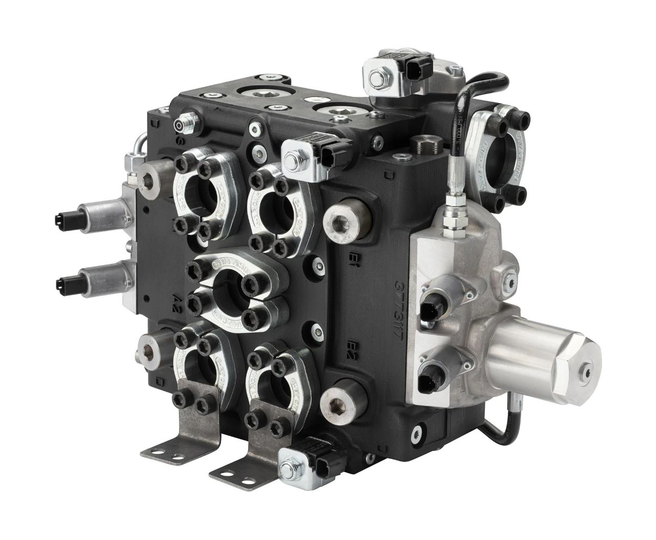 - 通過改善閥芯設(shè)計、增加電控卸荷功能,使大臂重力下降非常緊湊地集成至閥體;