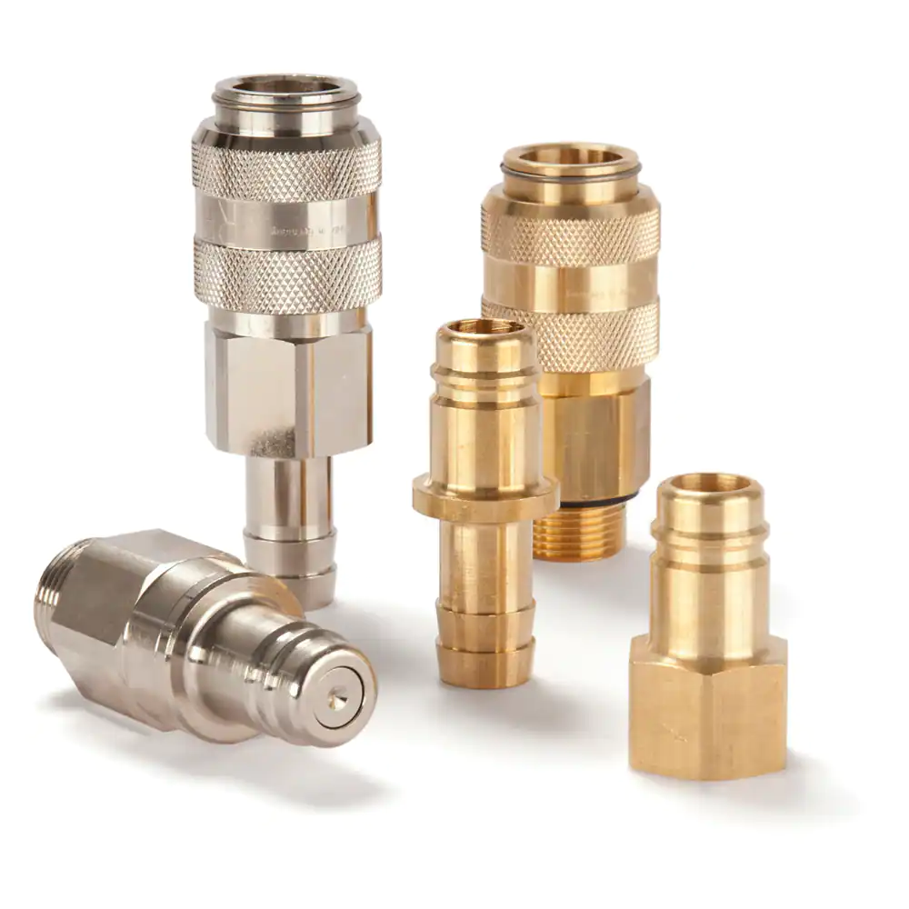 該系列快換接頭公稱通徑是15mm,主要用于氣動以及食品輸送的應(yīng)用,耐壓可達35bar。該系列快換結(jié)構(gòu)設(shè)計符合派克內(nèi)部的設(shè)計。接頭材料:黃銅。